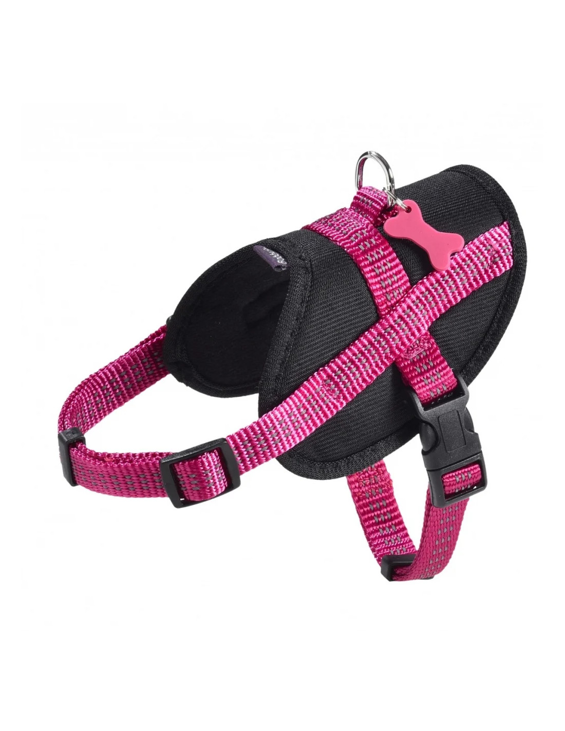 Ce harnais pour chien est doté d'une médaille en forme d'os et de surpiqures réfléchissantes !